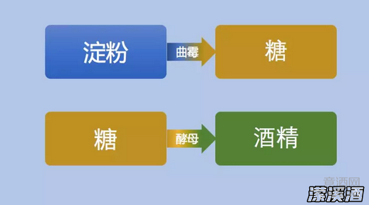 乳酸菌主要负责增加乳酸进行生物防控;霉菌将淀粉分解为可直接发酵的糖;酵母接力霉菌将糖转换为酒精;醋酸菌依然负责长期捣乱。其中糖化和酒精发酵过程是重叠进行的,出现了和其他酒不一样的边糖化边发酵的状态。