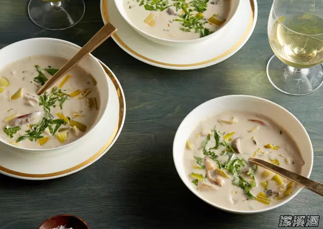 如果餐前食用的是浓郁的忌廉汤,一瓶没有经过橡木桶陈年的长相思(Sauvignon Blanc)或是酒体适中的西班牙阿尔巴里诺(Albarino)干白葡萄酒,加上合适的侍酒温度是非常好的搭配。