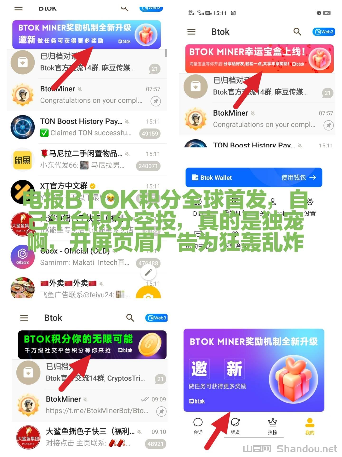 二代ton之称的BTOK平台币空投全球首发,开局就是公链价值!目前零撸较为成功的赛道就属于电报空投赛道,所以不要放过任何一个免费的空投,黄猴子电报BTOK是中文版的telegram,数据想通拥有千万级流量,今天介绍的就是BTOK平台积分空投,所以千万不要错过,内部广告全部拉满在宣传自己的积分空投!