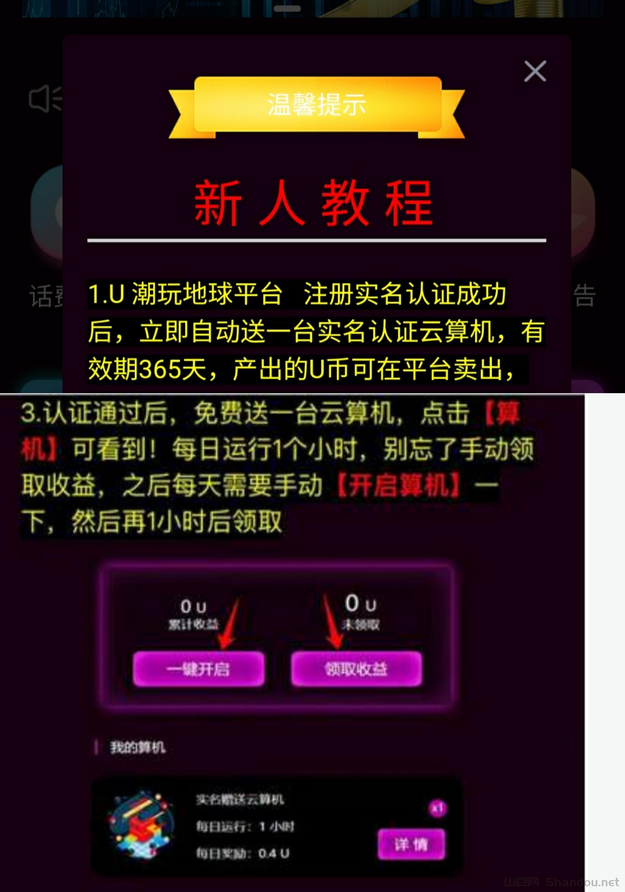 潮玩地球免费撸,用户简单实名后,平台送一台云算机。。无广告