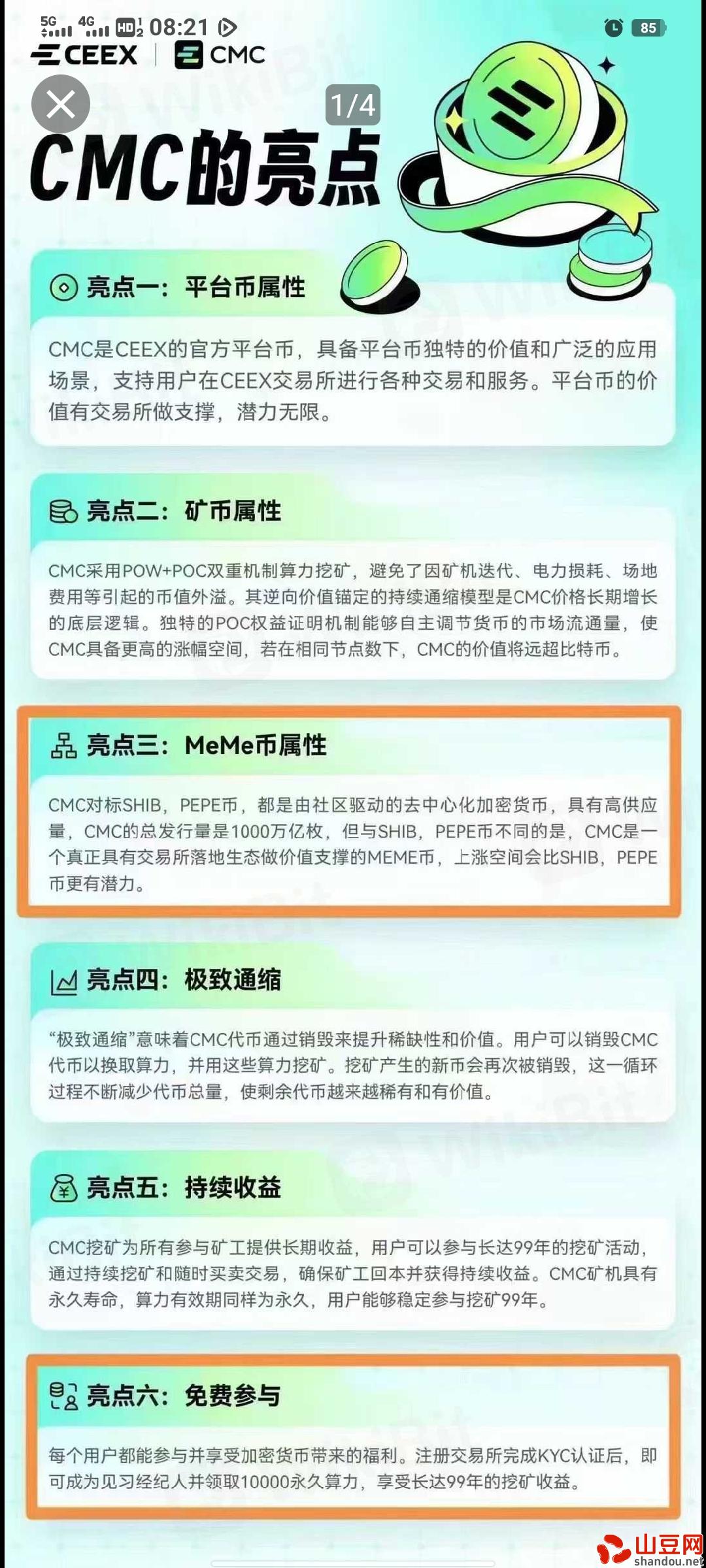 现在发行了平台币CMC.刚开始挖3来月并且已经上涨30倍左右,预估未来1到3年能达到百倍甚至千倍以上,