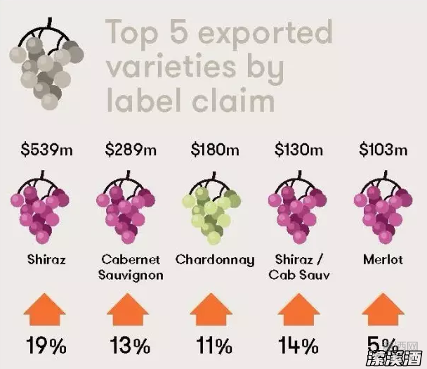 截止到2017年3月,澳大利亚设拉子依然在出口市场上稳居第一