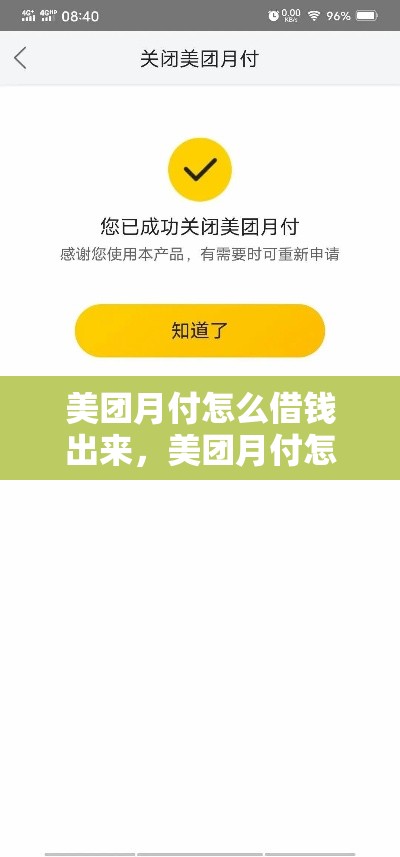 3、首先,良好的消费习惯很关键。保持按时还款,避免逾期,这能体现美团月付怎么借钱出来你的信用状况良好,让系统认为你有稳定可靠的还款能力,从而更有可能给你提升临时额度。其次,增加在美团平台的消费频率和金额。多使用美团进行各类消费,比如点外卖、订酒店、买团购券等,展示出你对平台的依赖和较高的消费活跃度。