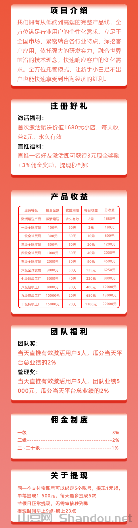 ①项目介绍:我们拥有从低端到高端的完整产品线,充分满足行业用户的个性化需求。 立足全国市场,紧密结合各行业特点,深入挖掘客户应用,依靠强大的研发能力,融合世界前沿技术理念,快速响应客户不断变化的需求。 全方位托管模式让新手足不出户即可快速享受海外经济红利。