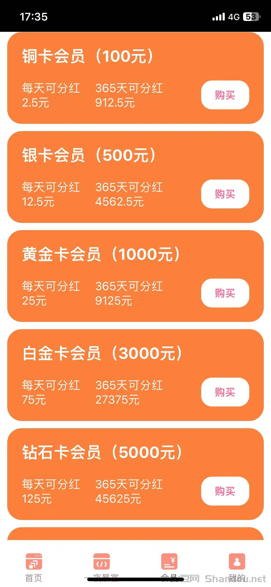 会员升级 通过缴纳会员费解锁更高收益权限(需逐级开通),最高等级会员可获广告**、任务返点等权益。