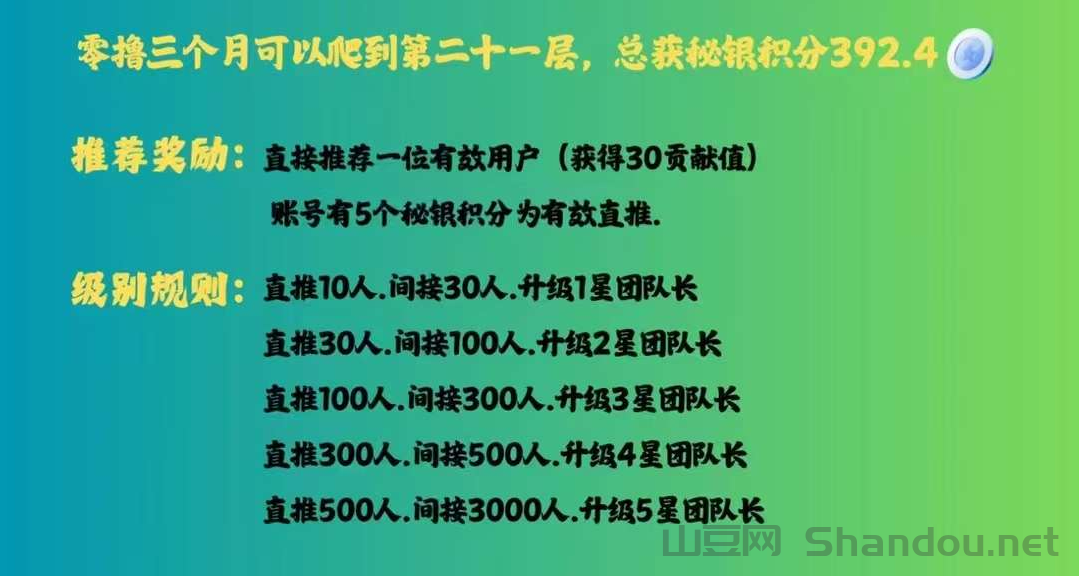 正文 闲赚无忧首码零撸赚钱模式,爬楼模式可多号撸 秒到网 V管理员 /01-04/9阅读/0评论 0104 闲赚无忧首码零撸赚钱模式,爬楼模式可多号撸注册很简单,不用手机验证吗,不用实名,注册多少帐号你自己说了算,抓紧努力,要赚嗨了 《闲赚无忧》爬楼模式,每天签到爬楼撸积分,1个积分2.5米,每天上涨 闲赚无忧爬楼模式! 每天签到参与爬楼撸秘银积分 积分1米起步,每天上涨!