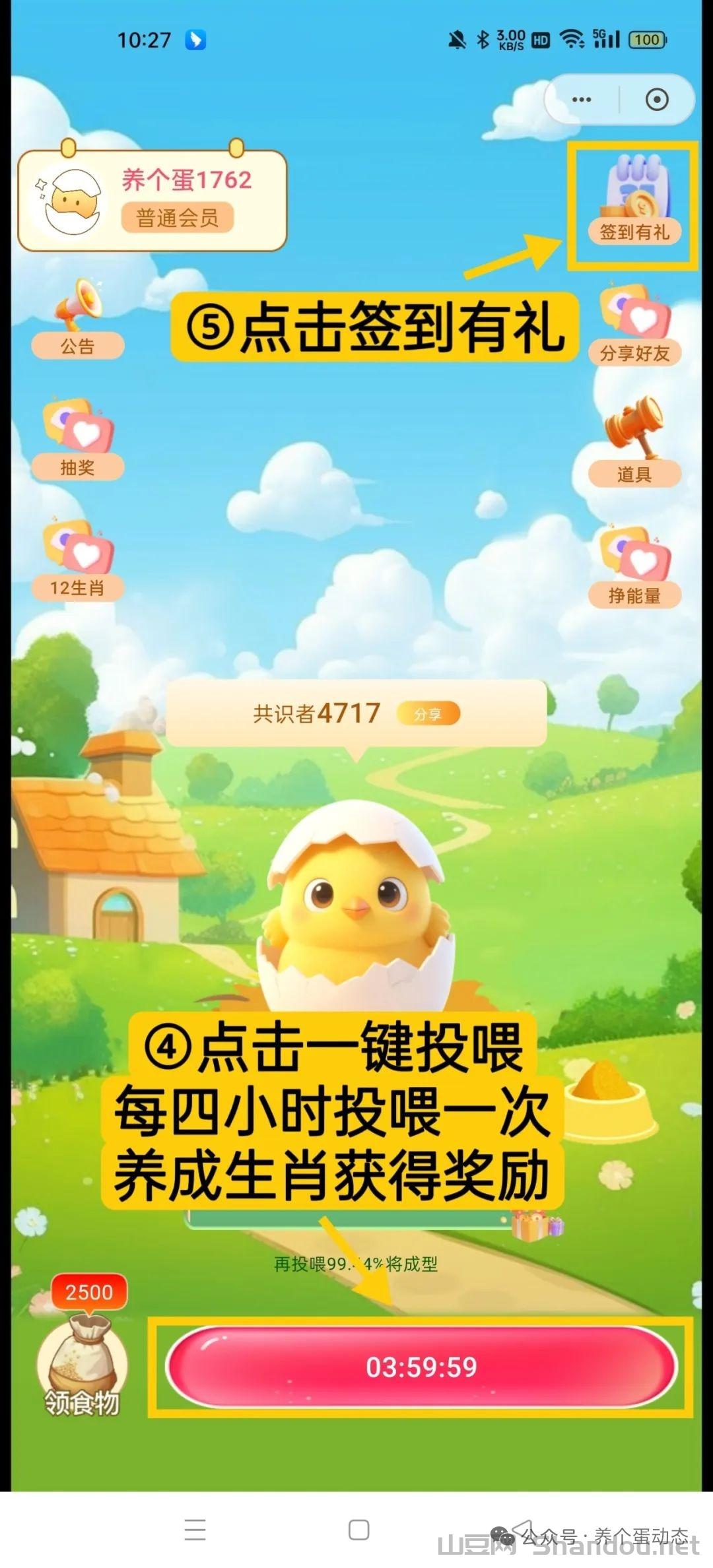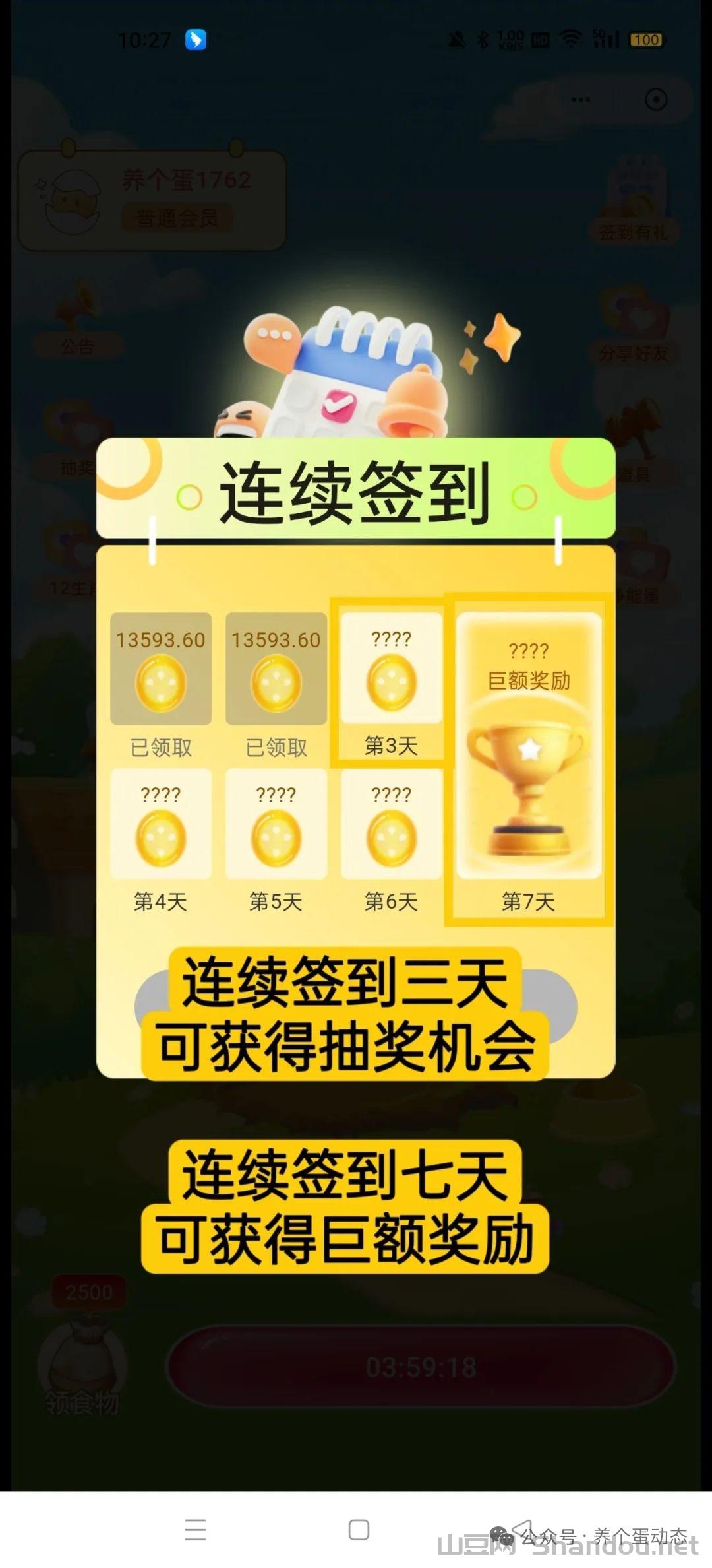 正文 养个蛋首码上线蛋蛋加圈圈模式! 秒到网 V管理员 /01-04/13阅读/0评论 0104 每日六个广告随时签到一键喂养自动转换积分增值结合十二生肖每养成一个获得超级奖励每签到三天赠送一次抽奖机会有加速卡,投喂卡,降费卡等更多模式等你来玩