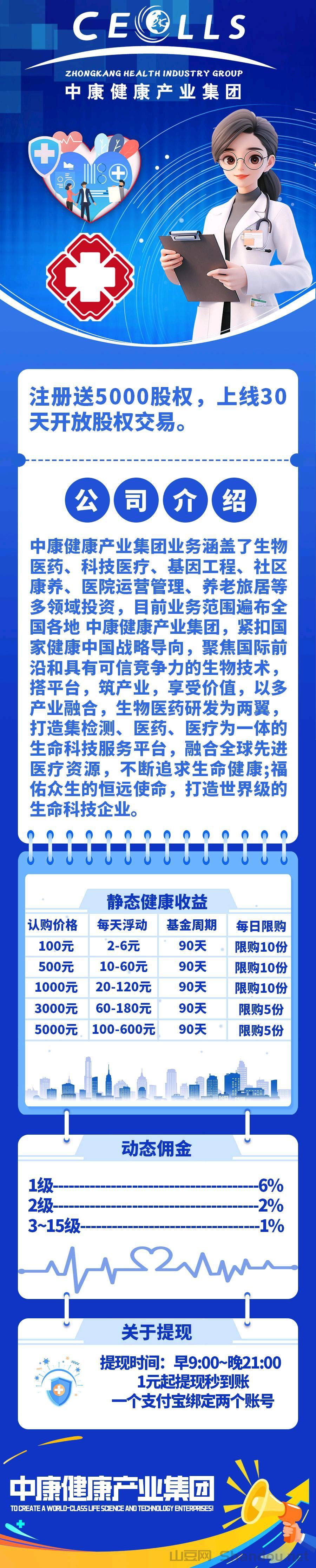 中新健康首码上线,实力团队对接,名额有限,先到先得,注册送500钻,到账快、收益稳,让每个人都能简单变现。