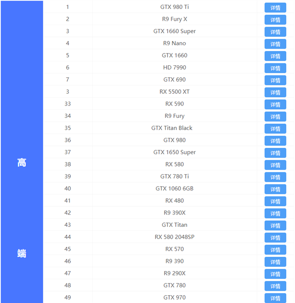 台式显卡天梯排名(2025年12月更新,按阵营及型号从高到低排列)