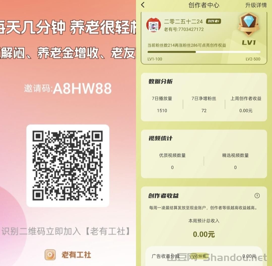 老有工社:http://www.laoyougongshe.com/h5/reg.html?invite_code=A8HW88