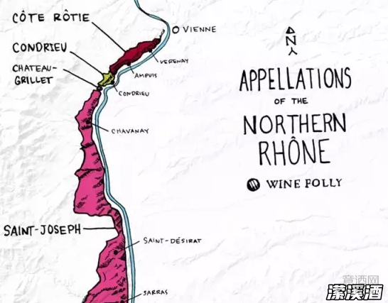 Château-Grillet 是一个单独的 AOC 产区,使用维奥涅尔酿造白葡萄酒。整个产区共3.8公顷,为同一个葡萄园拥有。2011年3月,该葡萄园由拉图酒庄(Château Latour)的拥有者法国 François Pinault 收购。