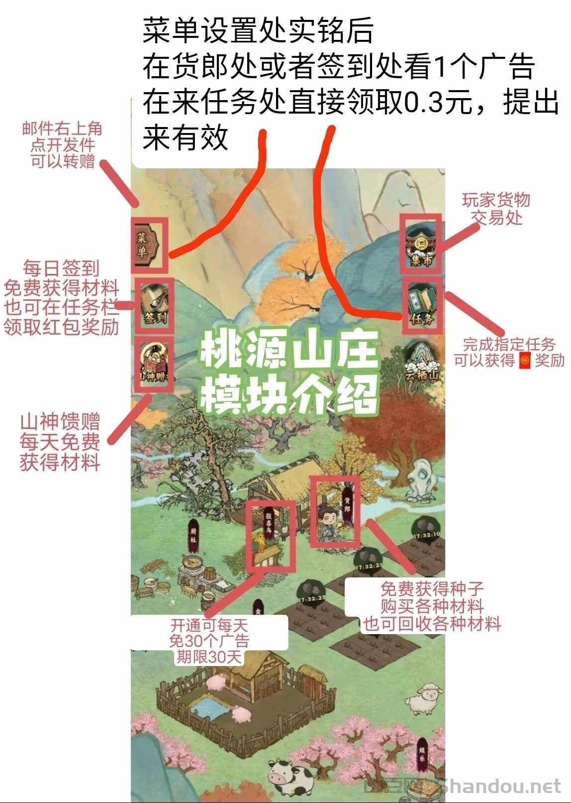 正文 桃源山记零撸保底高,多种创新玩法 秒到网 V管理员 /今天/4阅读/0评论 0112 桃源山记零撸,泡沫小,没有无限产出保底小麦1.8+转盘0.9*2.7元初始三块地,货郎处看广告获种子,种植收获作物直接官方回收或者集市出得玉石1个玉石2元,黑市群大量人在收消耗对应作物制作鱼饵钓鱼,回收得玉石菜品上架产10天玉石,到期换新品签到,山神赠礼转盘得作物,玉石等激活报喜鸟免看广告购斧产木材,回收得玉石