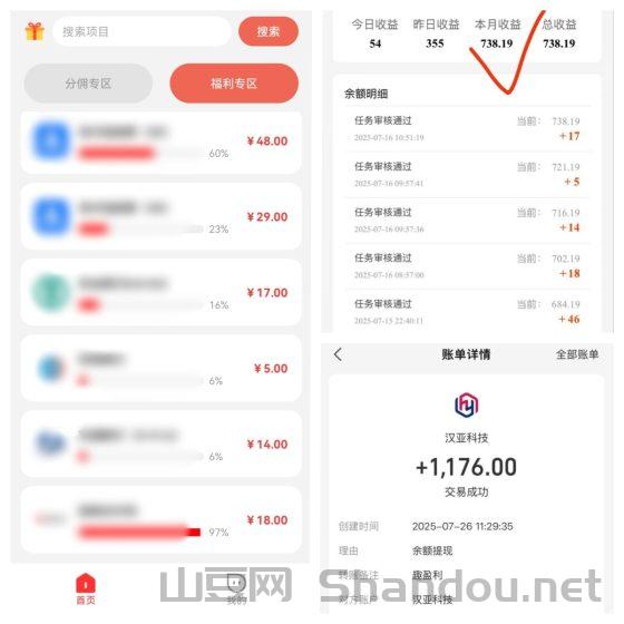趣盈利APP第一大版块:主做正规高单价任务,每单几块几十到上百不等,多劳多得,只要不懒随便赚