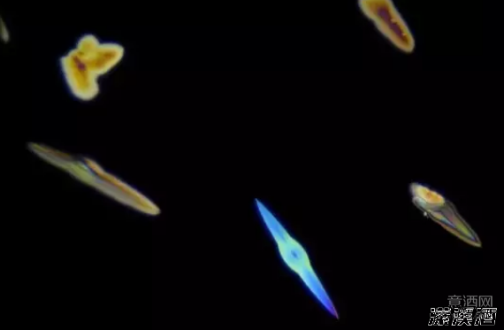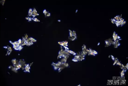 这是价值在300元左右的赤霞珠葡萄酒在高倍显微镜下的成像,其晶体色彩艳丽,聚合度也较高。