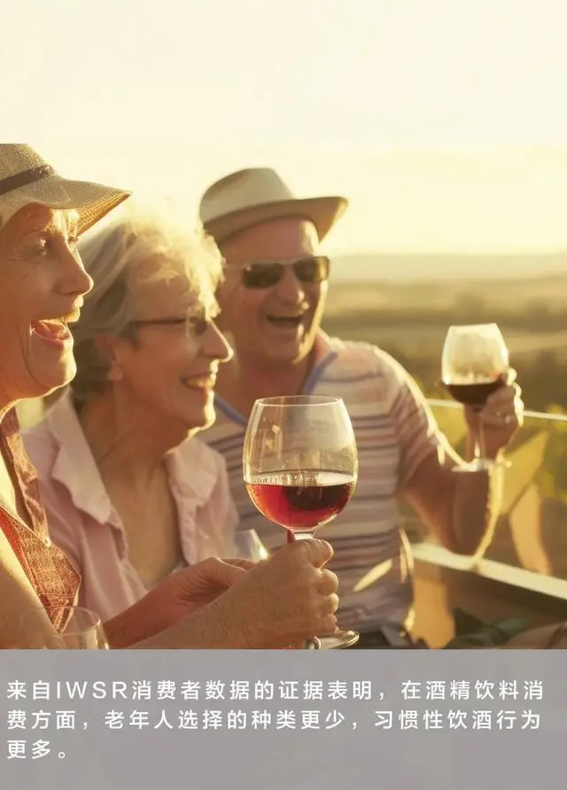 2022年,葡萄酒市场委员会进行了一项消费者细分调查。调查结果发现,在70岁以上的消费者中,23%的人每周至少喝一次酒,而在30岁以下的消费者中,这一比例仅为16%。在40年前,追逐退休年龄的饮酒者是愚蠢的。然而,到2040年,1/5的美国人将超过65岁。