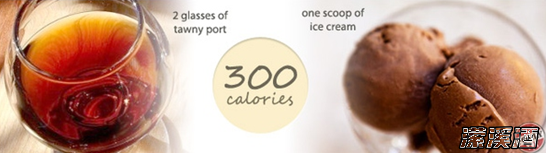 每盎司(约合29.4克)红葡萄酒大约含有25卡路里的热量。