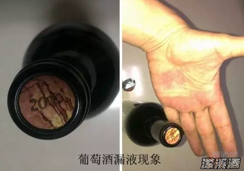漏液指没有开瓶前就发生酒液溢出的现象。在运输或储存过程中大幅冷热变化,酒塞没有紧密贴合,或者粗暴的运输方式,都有可能造成酒液从塞子和酒瓶的缝隙间渗漏出来。量少的可能只是把塞子外侧染红,多的可能流淌下来,污染酒标。