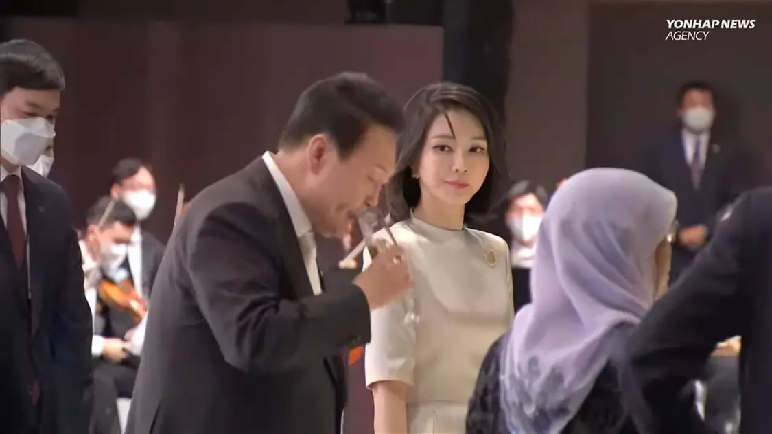 至于具体情形,据《首尔新闻》描述,“在新罗酒店所举行的就职晚宴上,尹总统端着一杯酒正要喝一口,金夫人用强烈的目光注视着他。尹总统慌忙放下酒杯。”